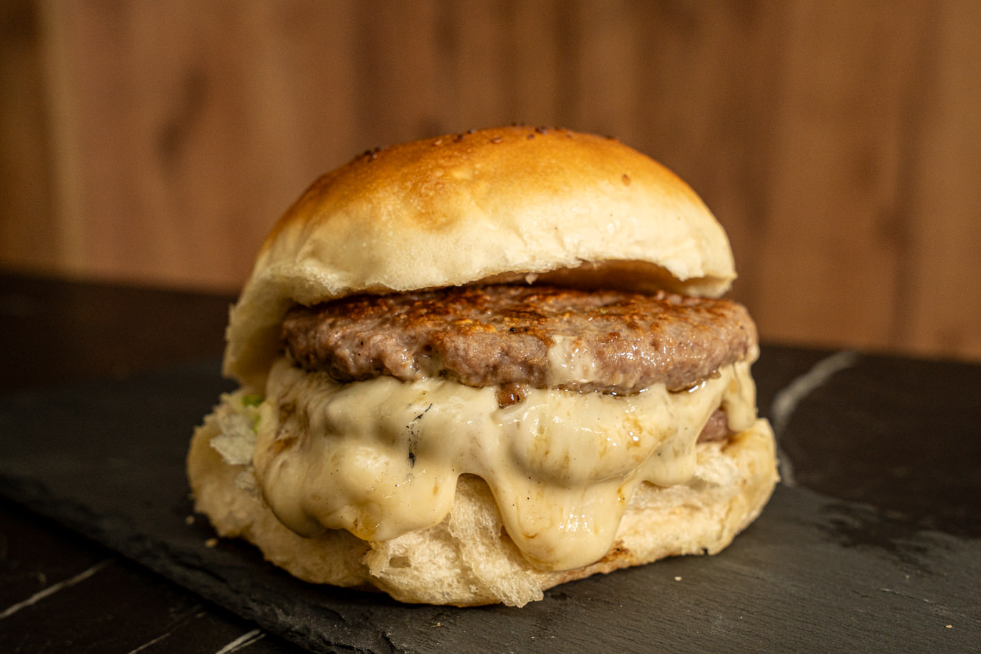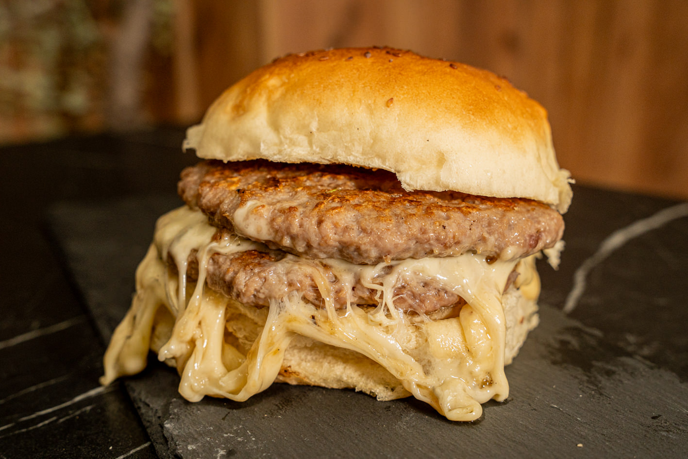 х2 плескавици, кашкавал, салата, бургер сос, помфрит