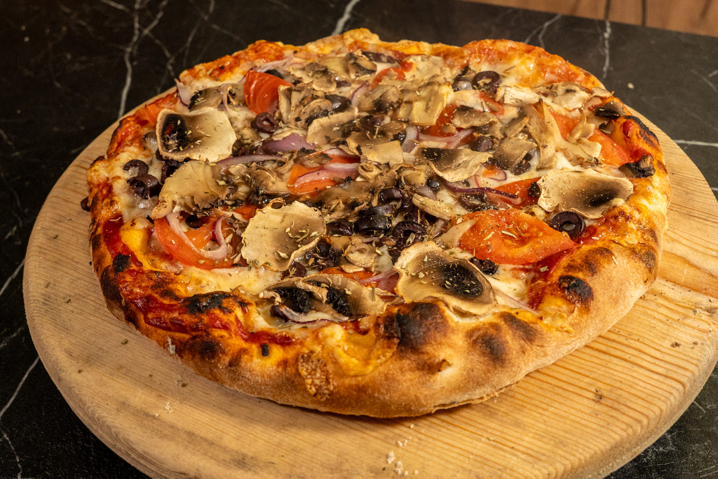 посен кашкавал, печурки, домат, кромид, маслинки